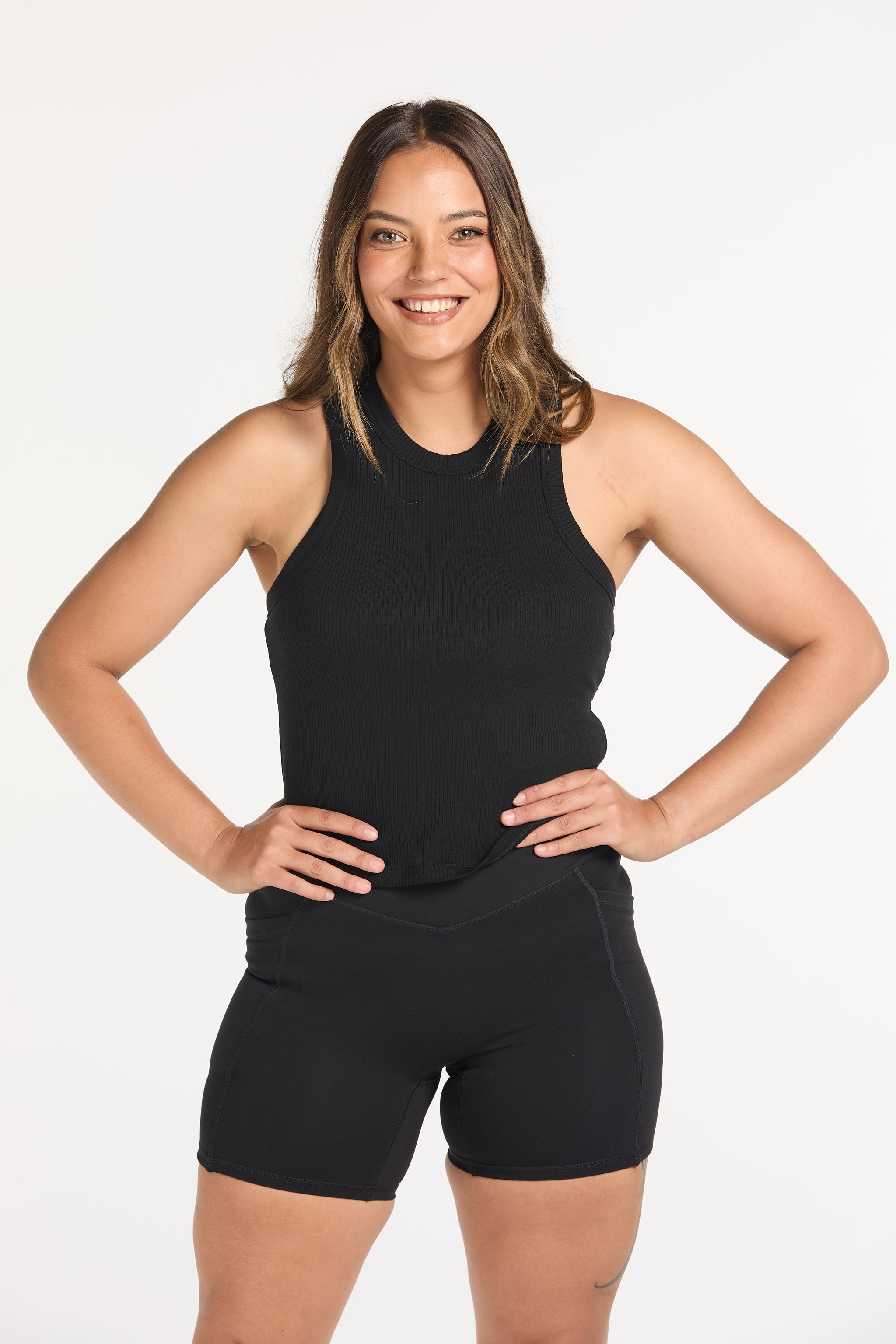 We just know you're going to love this as much as we do! Introducing our new everyday essential: Our Crop Rib Singlet. Crafted from ultra-soft, stretchy ribbed fabric, this singlet combines comfort and style in one effortless piece. Featuring a high frontal to give you more coverage during your workouts, curved hemline to compliment your body shape, flattering racerback design and a built-in shelf bra for light support, it’s perfect for layering or wearing solo. Whether you’re lounging, running errands, or hitting a low-impact workout, this singlet is made to move with you. A staple you’ll keep reaching for—on repeat.